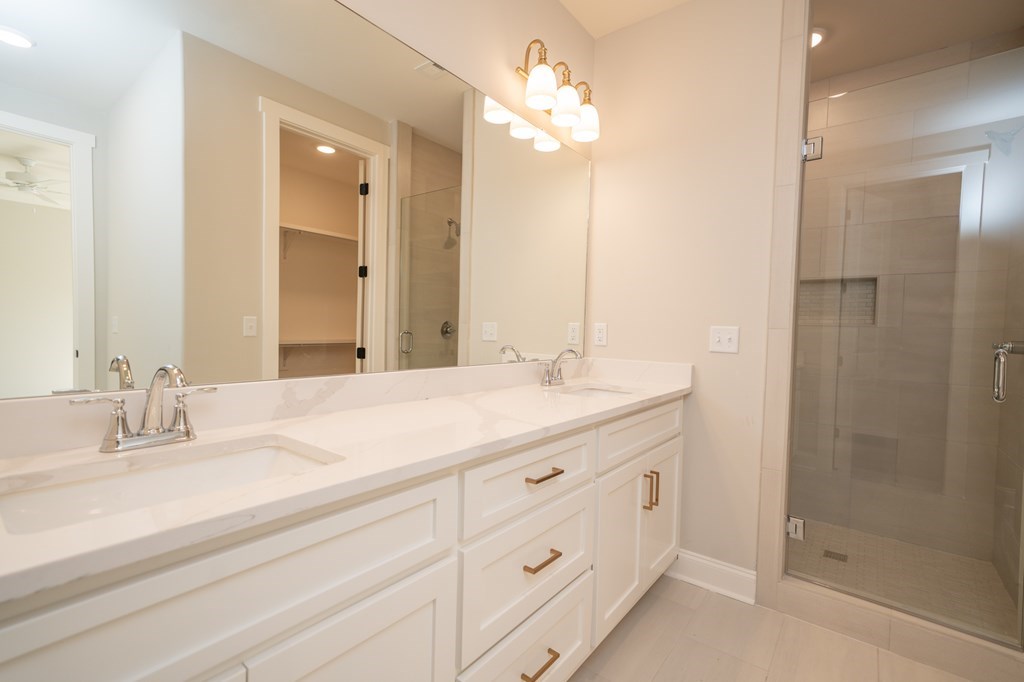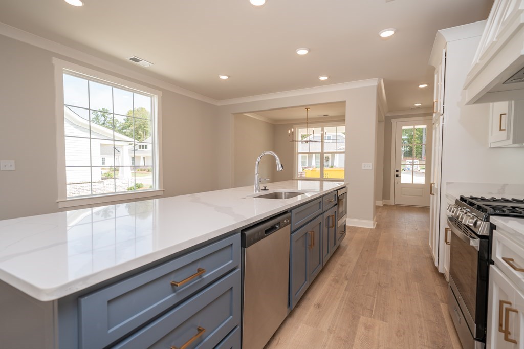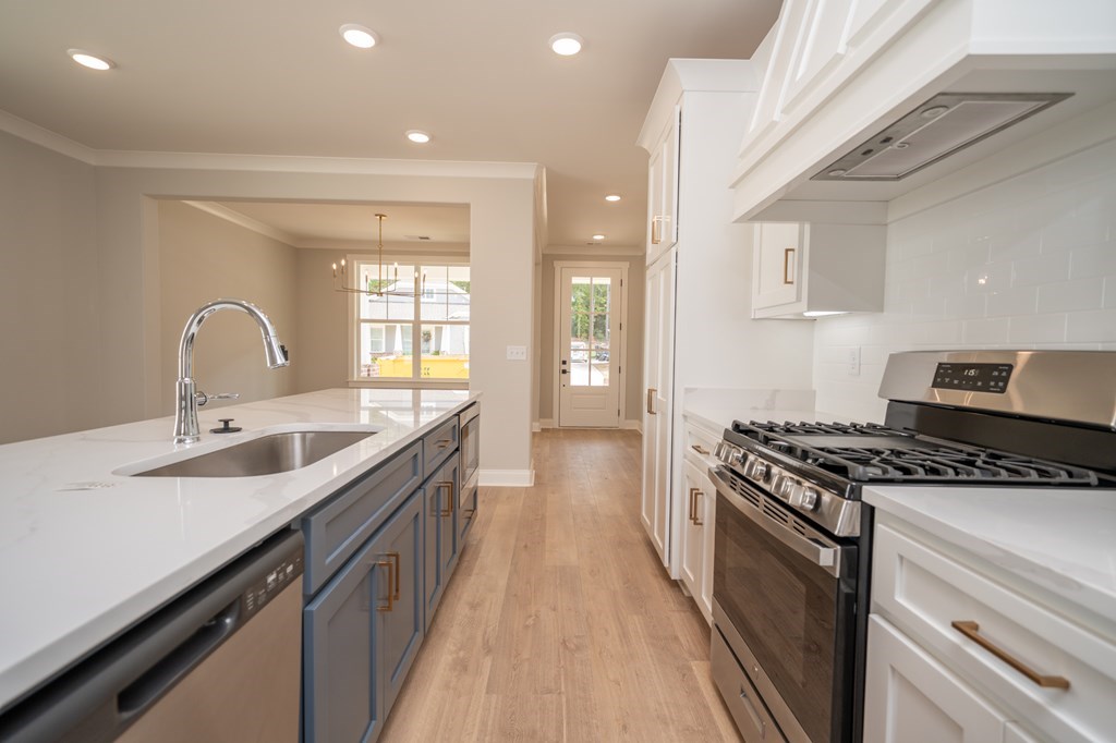 Popular Douglas A plan with 3 main level beds & 2 full baths! This home features a spacious living room, which is open to the kitchen! Beautiful LVP floors in all the bedrooms. Granite or Quartz tops throughout, under cabinet lightings, tile backsplash, stainless appliances, gas range, tank-less water heater, custom vent hood, soft close cabinet hardware, frameless glass shower, gas fireplace, gutters, 2-car garage, city schools, 2 fishing lakes, 3 playground areas, heavily landscaped entrance!