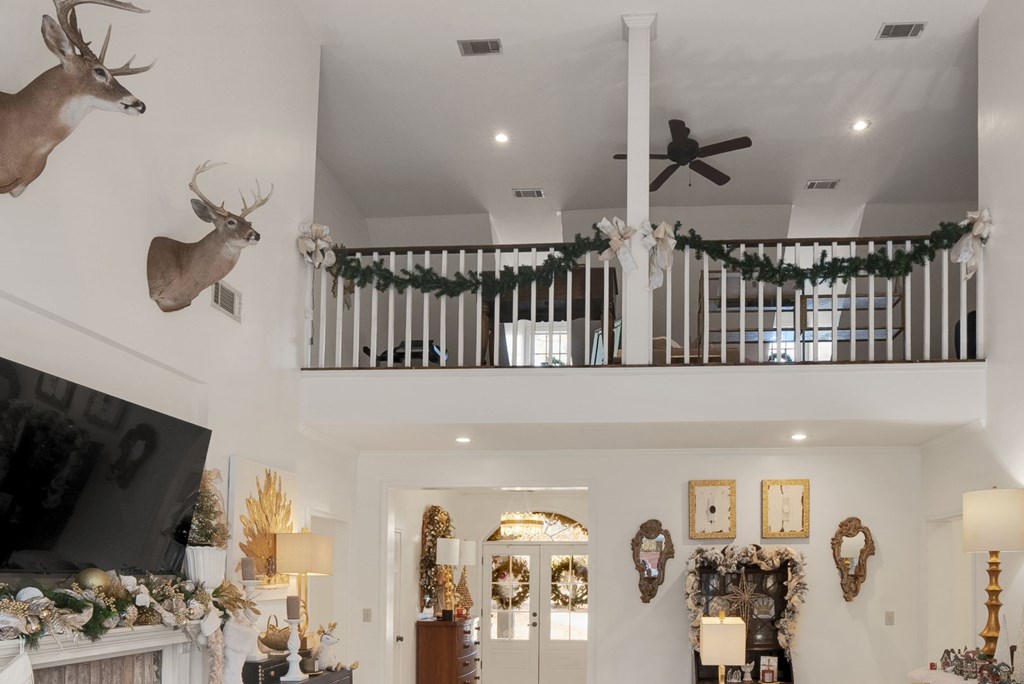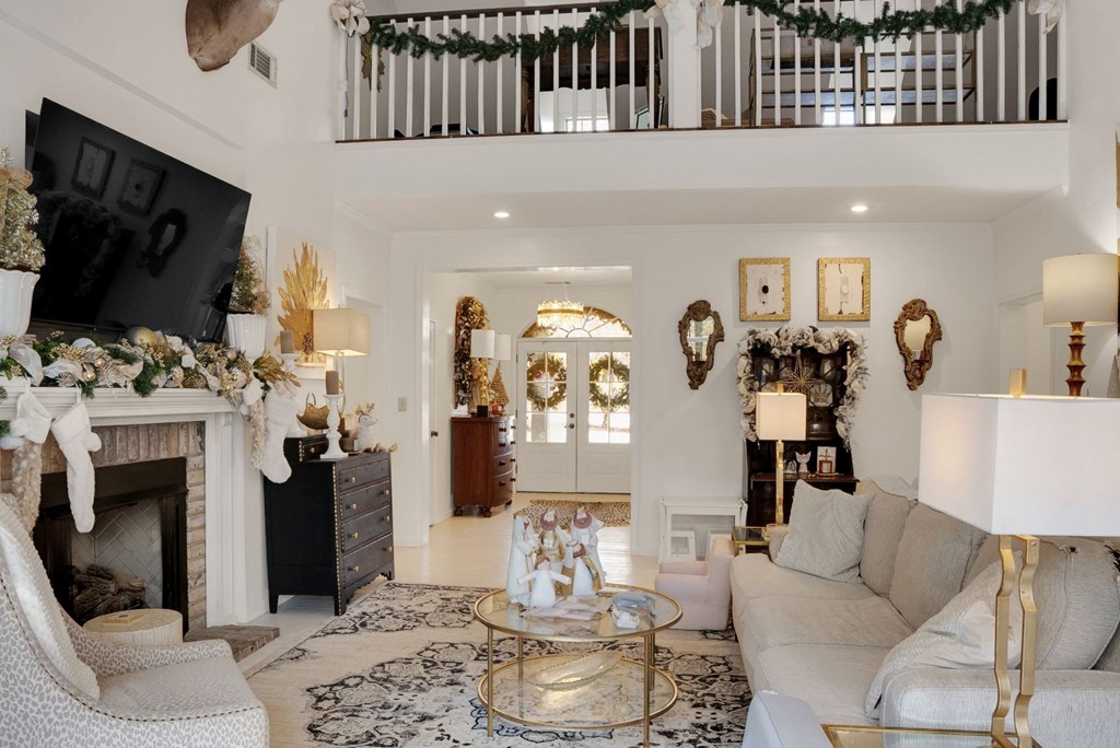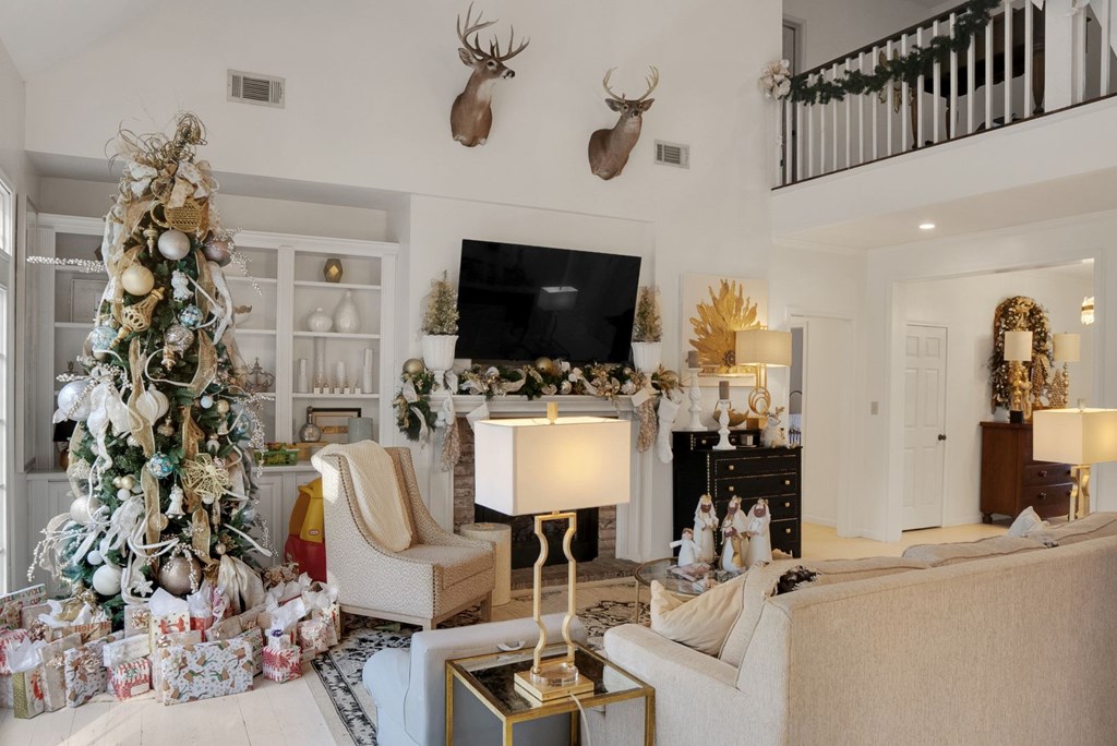 This beautifully maintained home blends classic southern charm with warm seasonal elegance. Featuring a grand foyer, high ceilings, custom built-ins, and a stunning fireplace, the living spaces are filled with natural light and cozy touches. The kitchen offers modern appliances, gas range, and an inviting layout for gatherings. Upstairs loft and balcony overlook the heart of the home. Every room showcases care, comfort, and timeless style. Whether you’re enjoying the spacious layout, relaxing in the sunlit living room, or decorating for the holidays, this home is ready for memories.