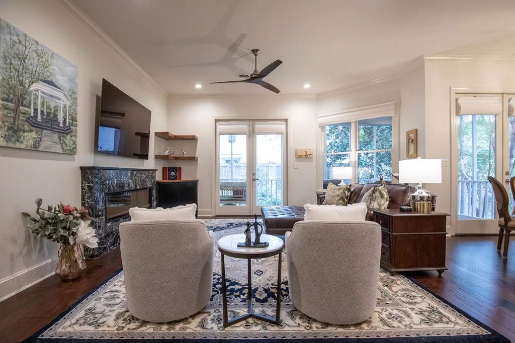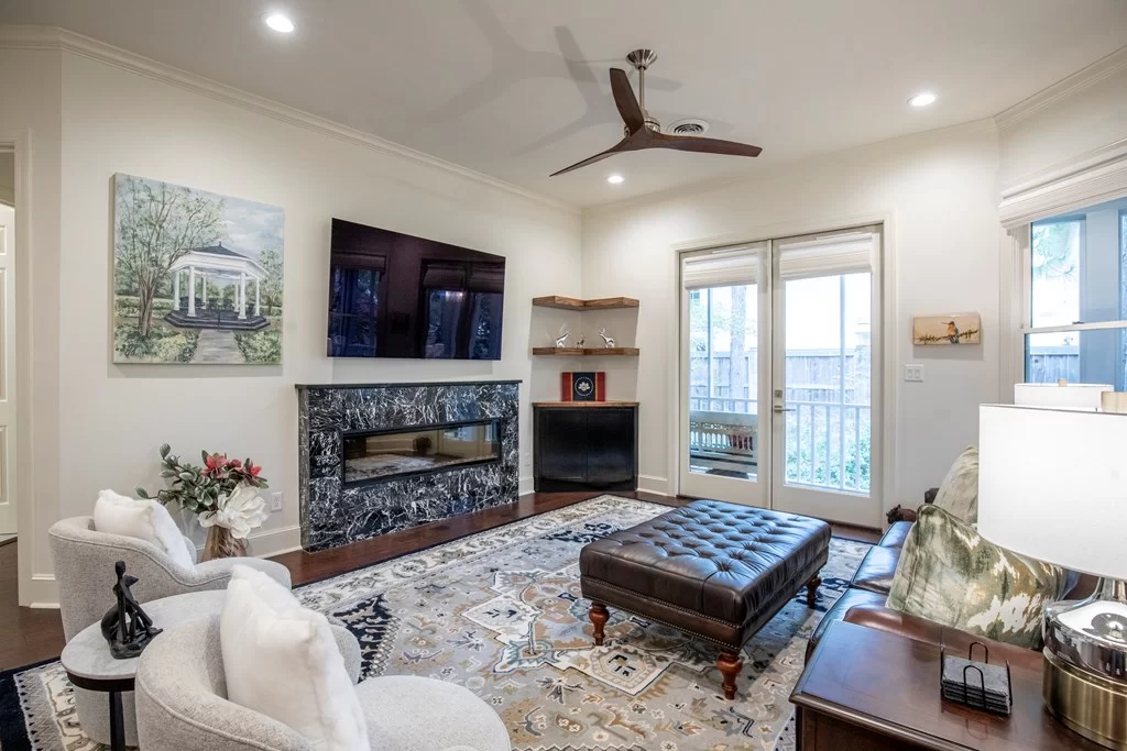Walk to The Grove and Square from this fully renovated luxury condo! The 280 sq. ft. screened porch overlooks a lush green space with access to a gazebo and beautiful foliage. Inside, enjoy top-of-the-line finishes, a stunning new kitchen, and an exquisite primary bath with heated floors. Designer blinds, custom shutters, and a sleek electric fireplace elevate every detail. Private elevator exclusively for this unit. This is Oxford luxury at its finest! Owners are happy to provide documents on renovations by Grantham Construction. Please see doc attached of a list of all upgrades in the unit.