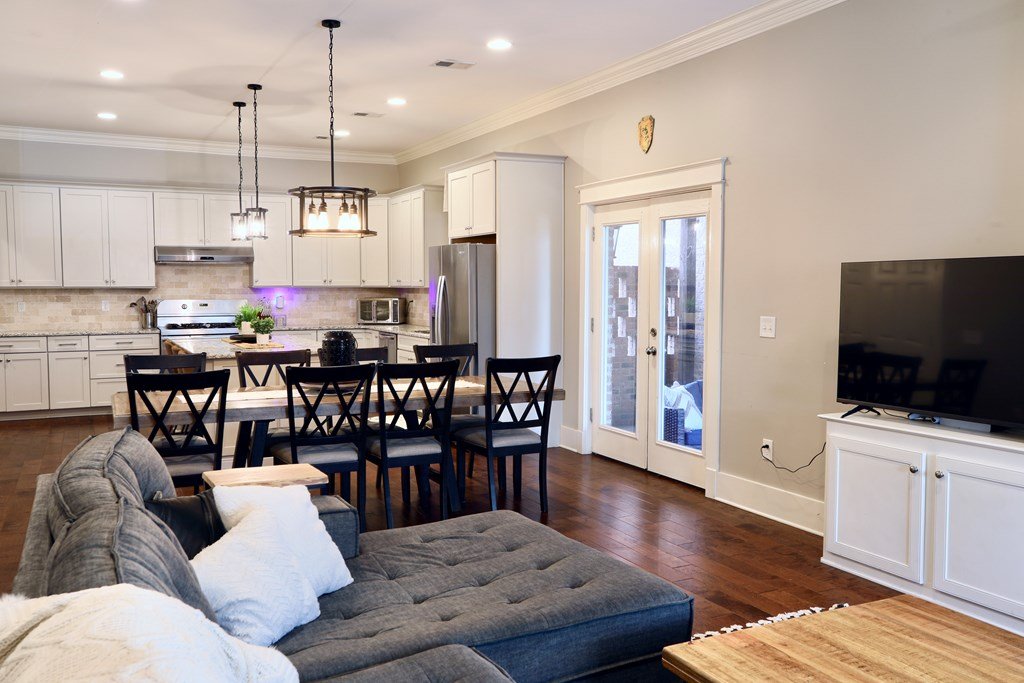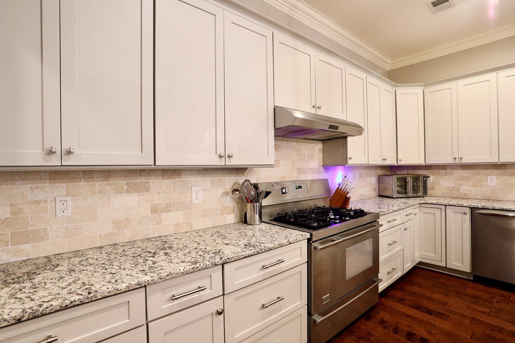 Rare 4 bedroom, 4 and 1/2 bath meticulously maintained fully furnished condo available now in the prime location of The Hamlet! Enjoy the spacious living area and open concept kitchen with granite countertops and stainless appliances. The private courtyard offers a perfect spot for relaxation and entertaining. Current owners have updated paint, light fixtures and flooring. Convenient location close to the University and South Lamar Court. A 2 car attached garage offers storage, security and convenience.
