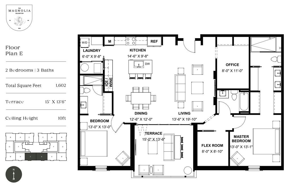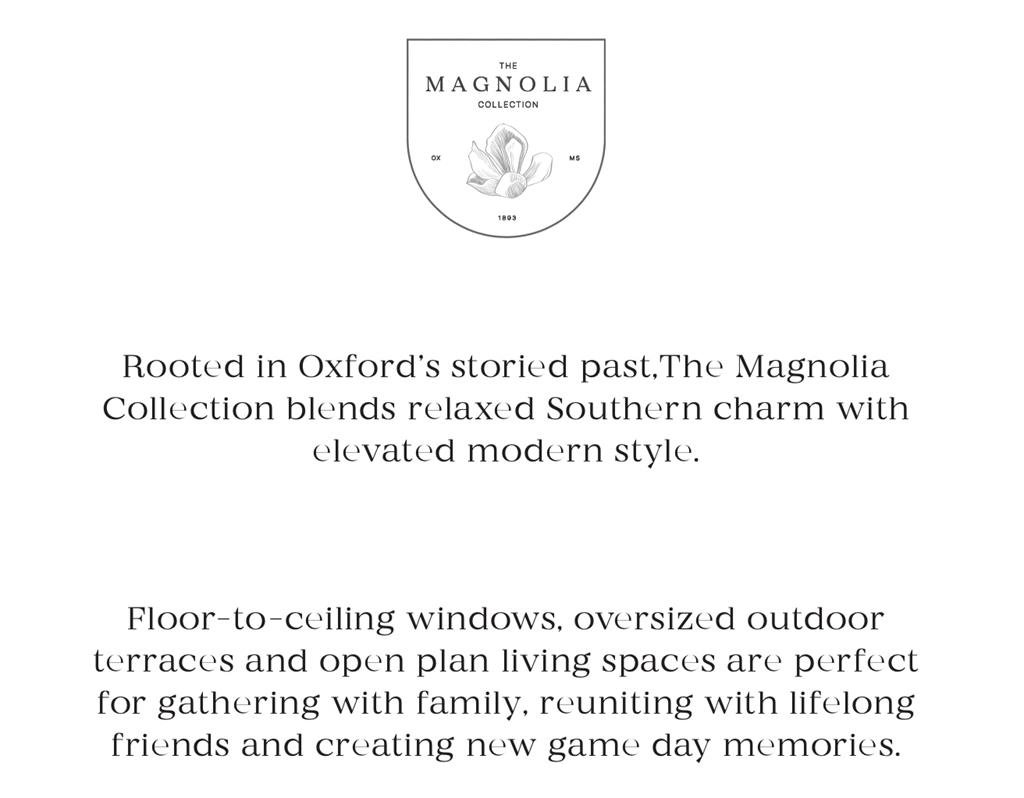 The Magnolia Collection was designed to be different. Each of the 6 Floorplans center on outdoor space, creating a true OUTDOOR LIVING ROOM. Patios include a Large Fan and Infratech Radiant Heater to extend comfort year-round to watch the game, a movie, or even a nap in the rain. Interior finishes include modern full inlay cabinetry, Taj Mahal quartzite countertops & backsplash, Emtek door hardware, Bosch appliances, and hardwood floors throughout. Select plans offer a half bath or one to two flex rooms—ideal for a bunk room, office, or a “her closet”. The primary bath features a double vanity and spacious walk-in shower, while guest baths include soaking tubs with frameless glass doors. Designed to maximize natural light and privacy, the building features east and west lobbies divided by a courtyard fountain, a green roof, commercial space, and parking garage with owner storage available. Full Time or Weekend Warrior, we’d love to welcome you to THE MAGNOLIA COLLECTION!