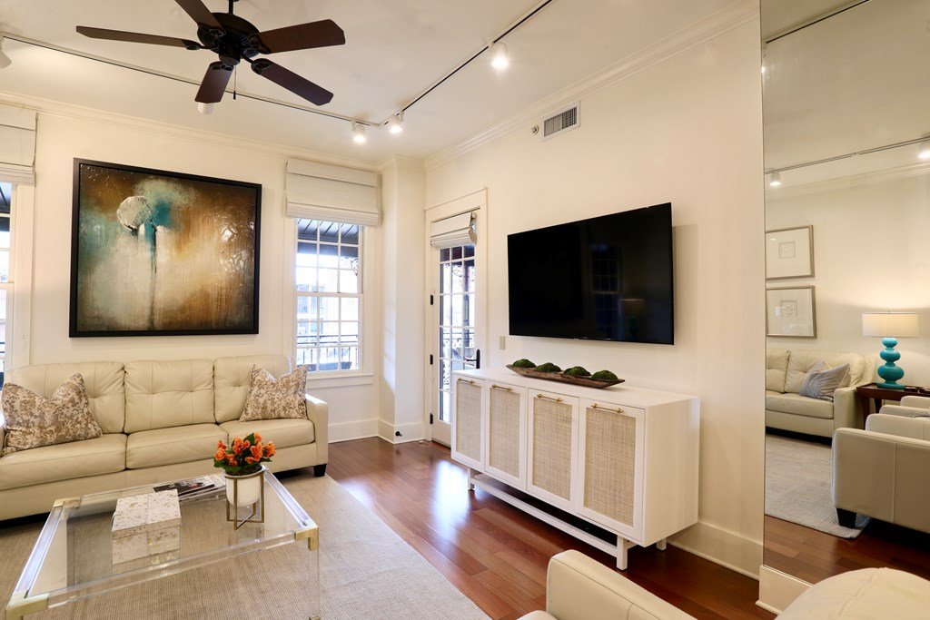 Rare opportunity to own a custom-built High Cotton condo featuring one of the largest private balconies overlooking the iconic Oxford Square. This exceptional condo is offered fully furnished, with all furniture, draperies, bed linens and original art thoughtfully curated by one of the South’s premier interior designers and the owner, creates a truly turnkey investment or personal retreat. 10-foot ceilings, rich hardwood floors, sleek solid-surface quartz countertops,Viking Kitchen and high-end finishes are throughout. The unit also includes reserved, secure in-building parking for added convenience.Owners also enjoy exclusive access to the private rooftop clubhouse and terrace, known as The Cotton Club—perfect for relaxing or entertaining with panoramic views of the Square.In addition to its luxury appeal, the property generated $65,000 in gross short-term rental income in 2025, making it an outstanding investment opportunity. Schedule your tour of this premier property on the Square.