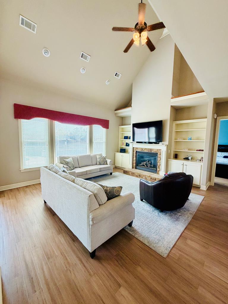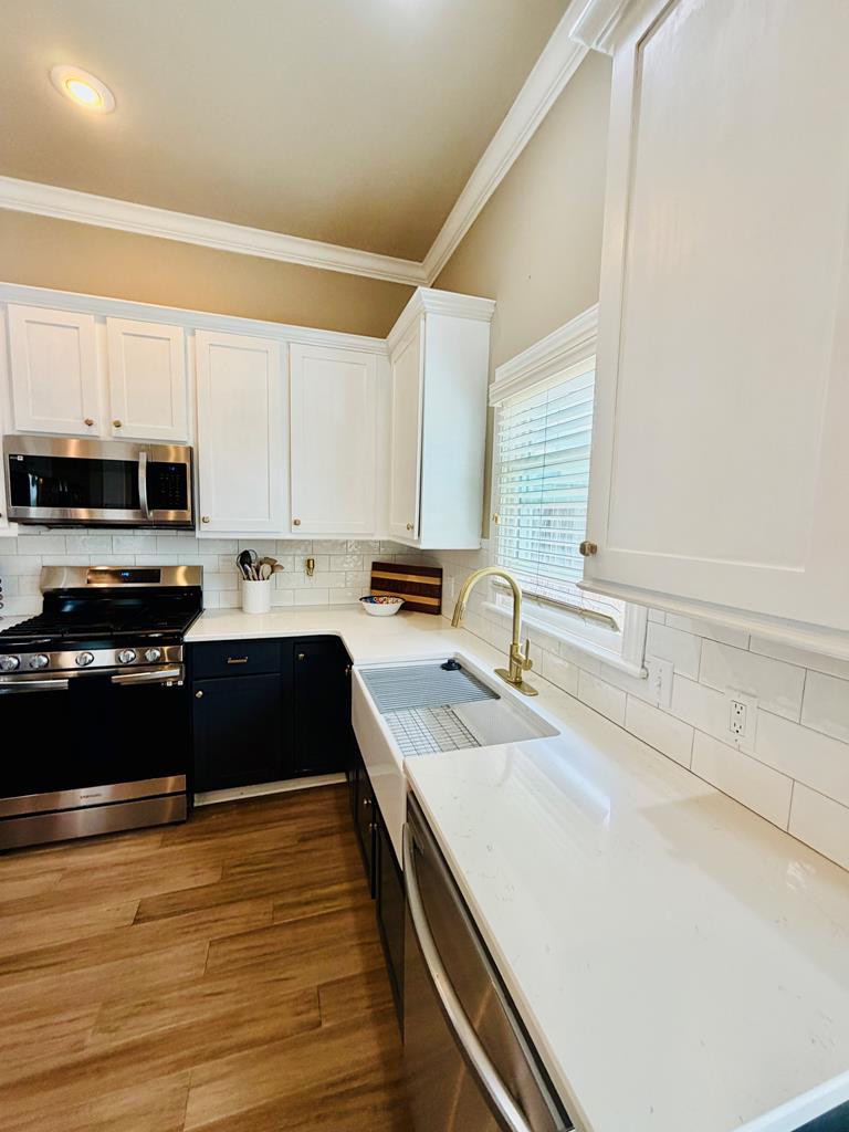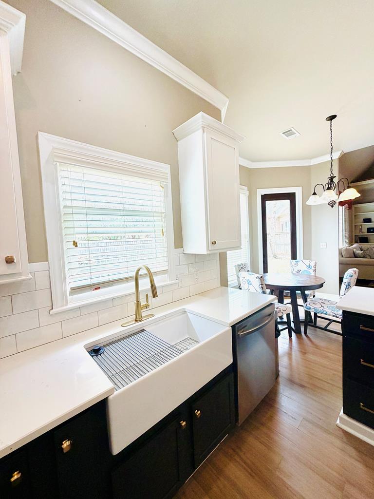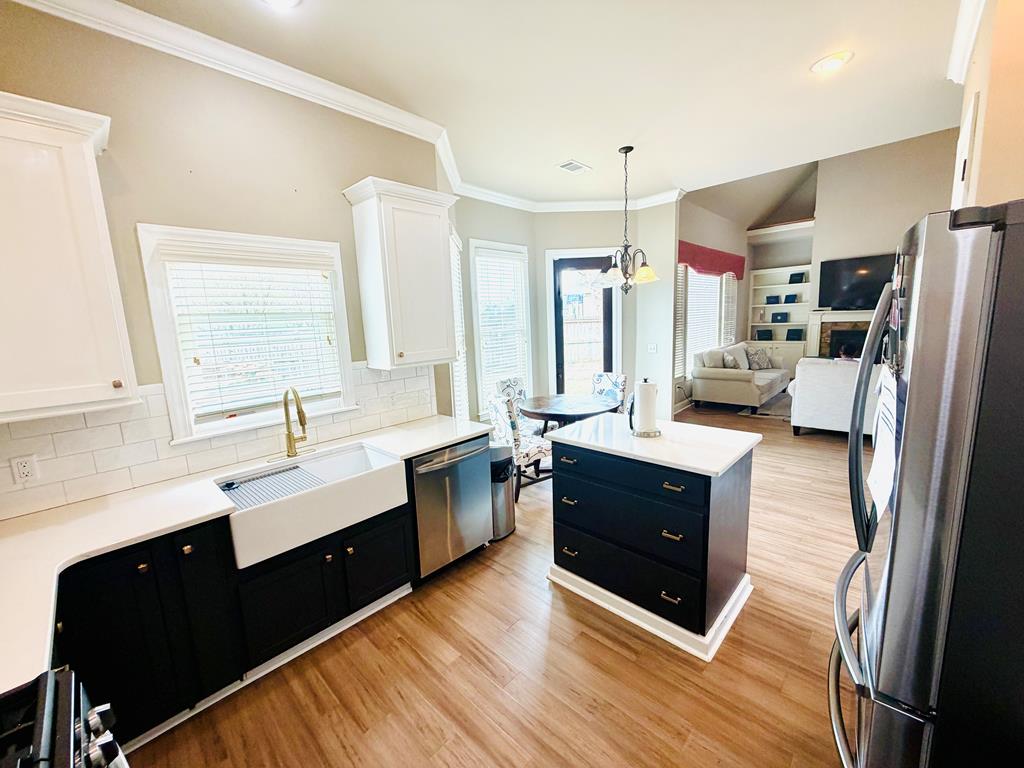 Beautifully situated in a quiet Wellsgate cul-de-sac, this 4BR/3.5BA home features a Gunite pool and a beautifully updated kitchen with farmhouse sink, quartz countertops and coordinating subway tile backsplash, plus a stainless appliance pkg including a side-by-side refrigerator. Newly installed Bamboo flooring enhances the main living areas and primary suite. Vaulted family room features built-ins on each side of the gas log fireplace with a mantel ready for your wide screen. Triple windows fill the space with natural light and overlook the private pool that has been serviced and ready for hours of relaxation and fun in the sun in your own private oasis! Thoughtfully priced to allow buyer personalization, offering a wonderful opportunity to make it your own.