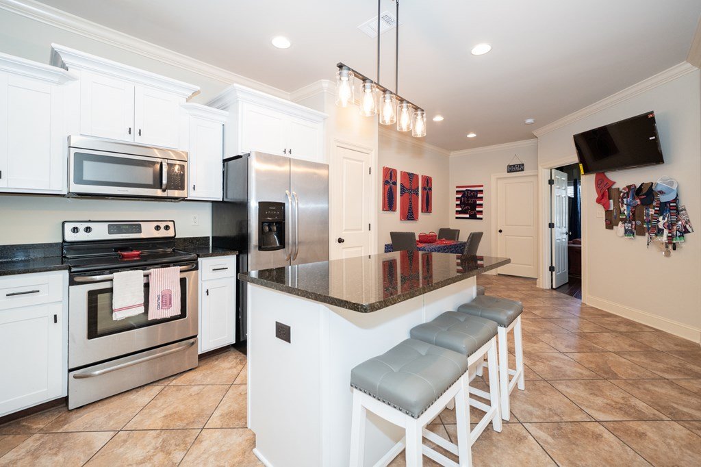 Gorgeous move-in ready END UNIT in popular Fleur de Lis just 1.5 miles south of Ole Miss campus! Prime location in the complex with a fenced patio, short walk to the pool & 3 assigned parking spots right out front. Spacious kitchen offers granite countertops, tile flooring, stainless appliances & room for a dining table—perfect for guests. Flexible floor plan with a main-level bedroom, plus 2 upstairs bedrooms each with private baths & walk-in closets. Beautifully maintained grounds in a quiet, safe setting just minutes to campus. Ideal for students, game weekends, or investment—ACT FAST!