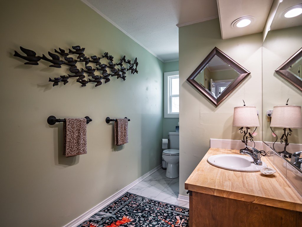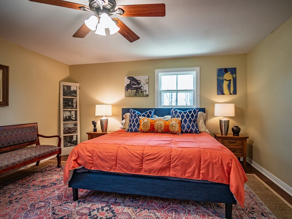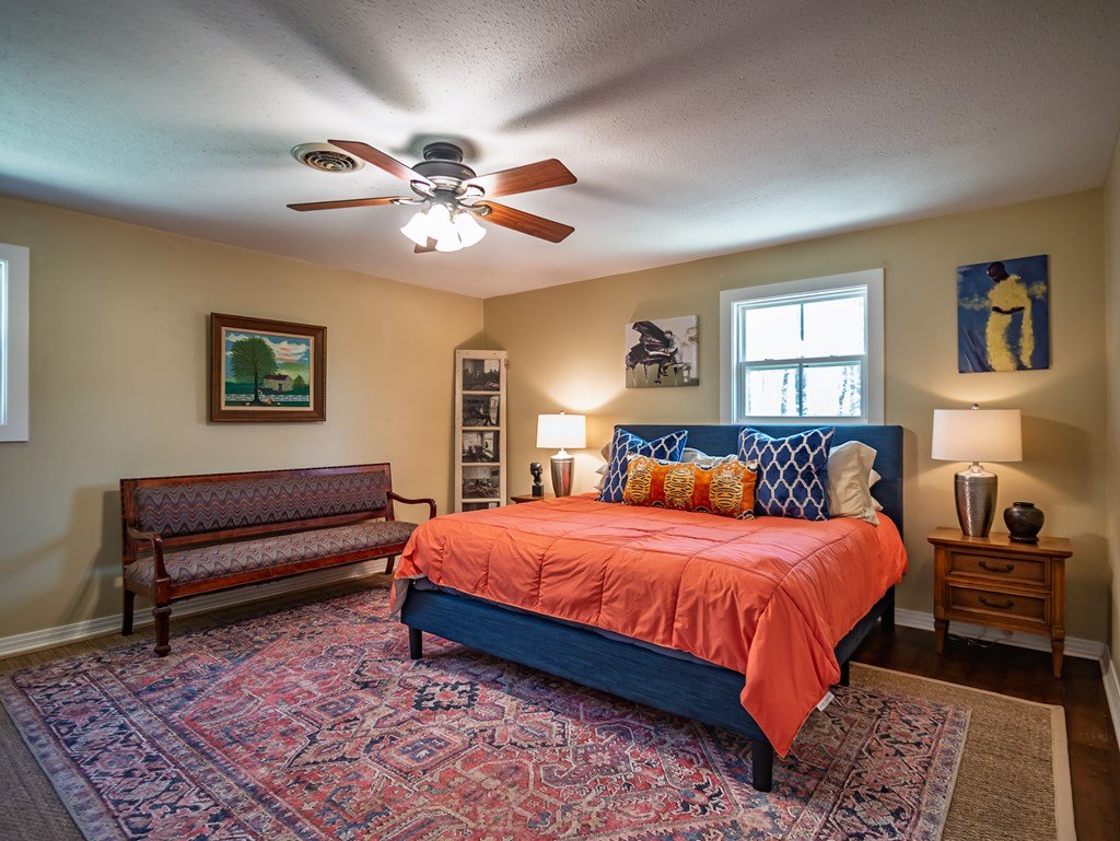 Discover your private estate: a spacious tri-level home on 2.5 wooded acres just 3 miles from town. This updated 6-bed, 4.5-bath retreat, built in 1975, blends peaceful country living with convenience and strong income potential. Enter on the main level featuring a character-filled living room with exposed brick, beams, built-ins, and a wood-burning fireplace, plus a dining room and a luxurious primary suite with gas fireplace and spa-like bath. Upstairs offers a second primary suite, additional bedrooms, and full bath ideal for guests or family. The ground level includes another suite, bedroom, full bath, and a private-entry space currently operating as a successful Airbnb generating at least $12,000 annually. Enjoy a remodeled gourmet kitchen, rustic charm, and serene natural surroundings with ample privacy. A carport adds convenience. Perfect for multi-generational living and entertaining, this home offers space, flexibility, and lifestyle in one unique property.