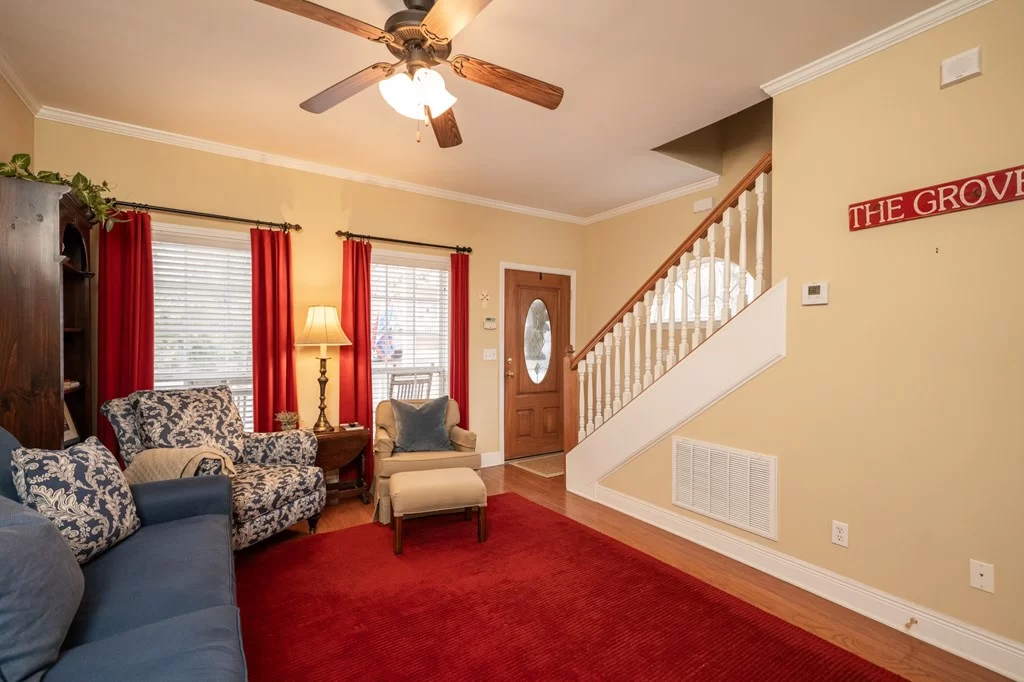 Welcome to 302 Russell Drive- a rare opportunity to own one of Oxford’s most private, beautifully wooded and gated condos at Russelin’ Leaves. Surrounded by mature landscaping in the heart of Oxford, this property feels like home- a quiet, private retreat boasting brick construction, a beautiful front porch for relaxing, a spacious side deck, gas fireplace, 3 bedrooms, 3.5 baths, 1347 square feet of living area- all FULLY FURNISHED and ready for you, your friends and your family to start enjoying! Privacy, location, and charm all wrapped up in one package at 302 Russell Drive!
