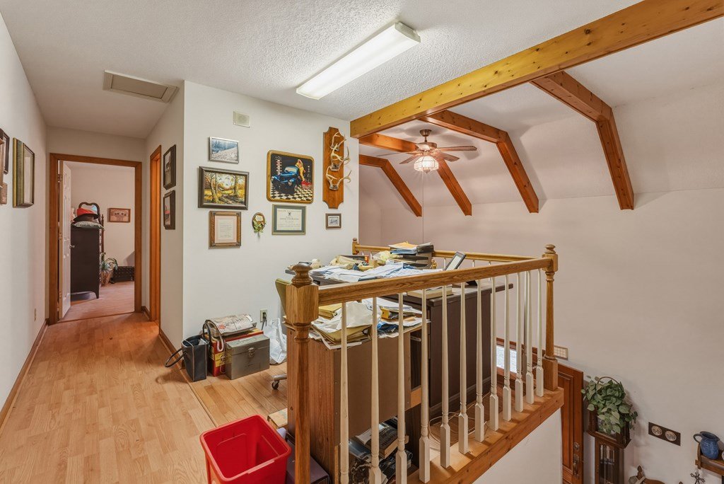 Country home with detached garage on 28.4 fenced acres featuring a pond, and barn. The property also includes a workshop, a small rustic cabin overlooking the pond and plenty of space for livestock, recreation, or enjoying peaceful country living.