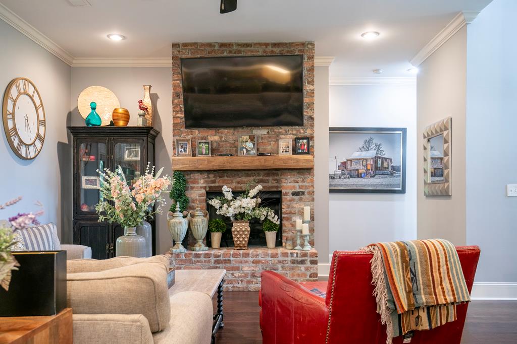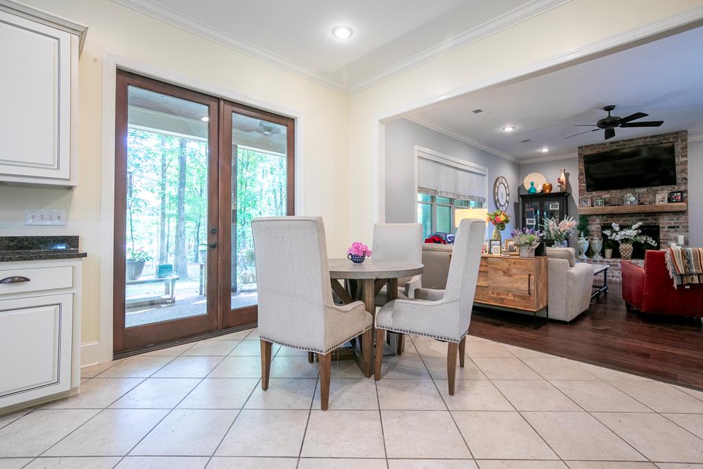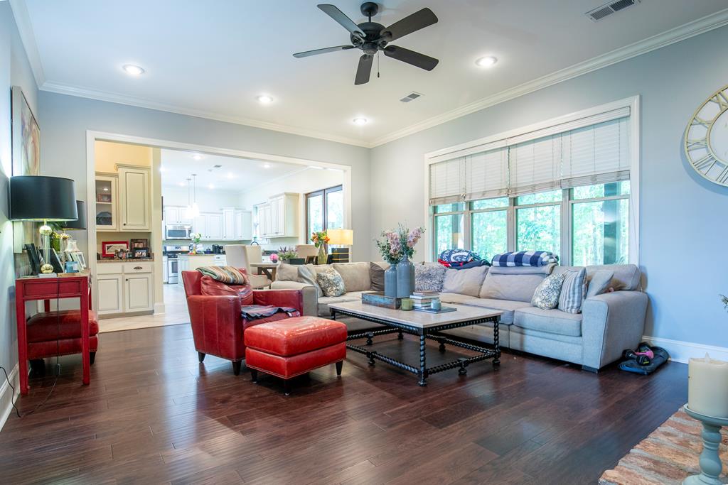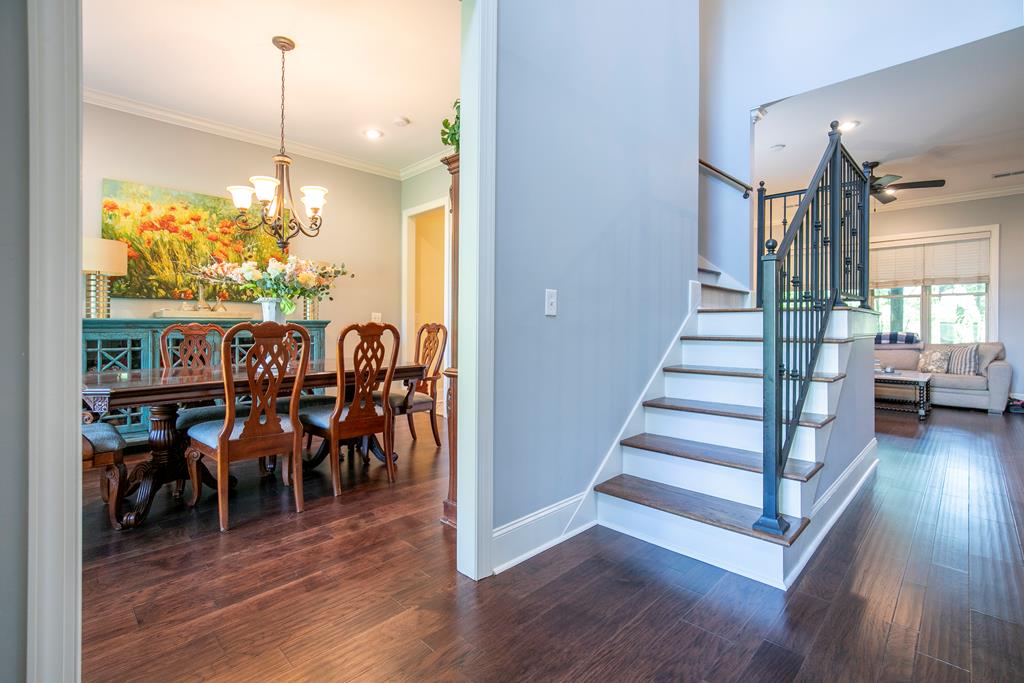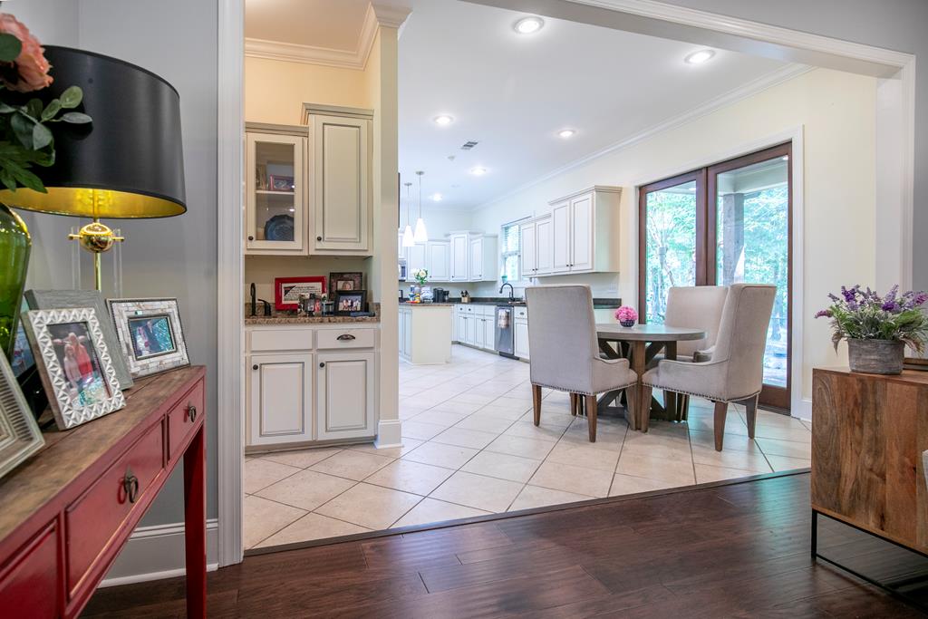 Lakeside Luxury Awaits. Nestled on a serene, professionally managed lake amid towering hardwoods, this immaculate 5-bed, 4-bath waterfront gem redefines elegance. With surging demand for wellness-inspired lakefront havens, enjoy open indoor-outdoor flow. Gleaming hardwoods lead to a chef’s kitchen (granite counters, stainless appliances) flowing into a fireplace-lit living room & formal dining—perfect for gatherings. Upstairs: oversized secondary master suite, bonus room, 5 spacious beds & 4 baths for multi-gen living.Shaded screened porch offers panoramic lake views for coffee or dinners.